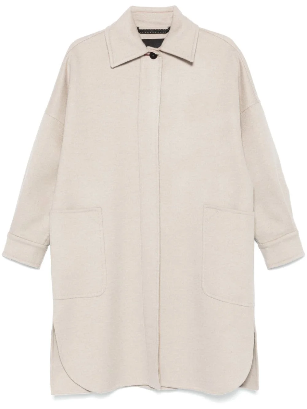 Baruffa coat Highlights - Light beige - Cashmere - Concealed front button fastening - Classic collar - Drop shoulder - Long sleeves - Buttoned cuffs - Two chest patch pockets - Short side slits - Straight hem Made in Italy Composition Cashmere 100% SIZE & FIT Model measurements Height 5 ft 10 in(1.78 m) Bust/Chest 31.49 in(80 cm) Hips 37 in(94 cm) Waist 23.62 in(60 cm) FittingInformation Designed to be unstructured, offering a loose fit throughout Made from a midweight non-stretch fabric