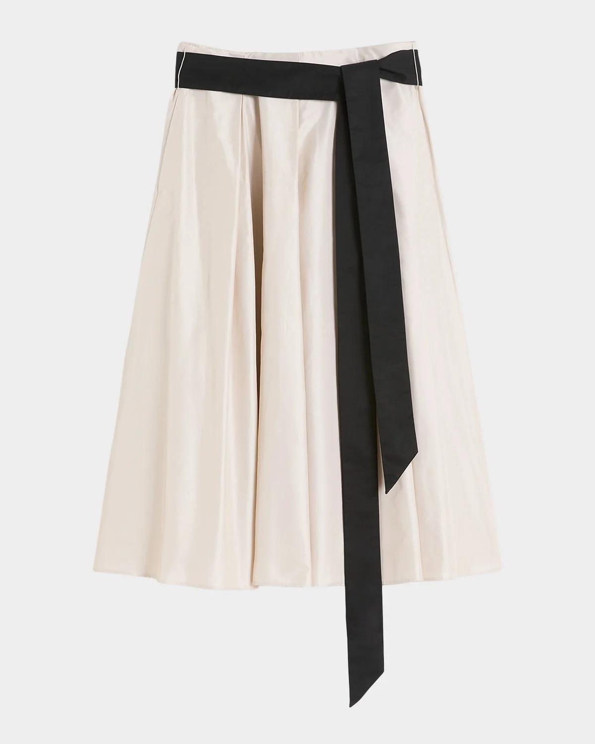 Baschi Waist-Sash Pleated Taffeta Midi Skirt