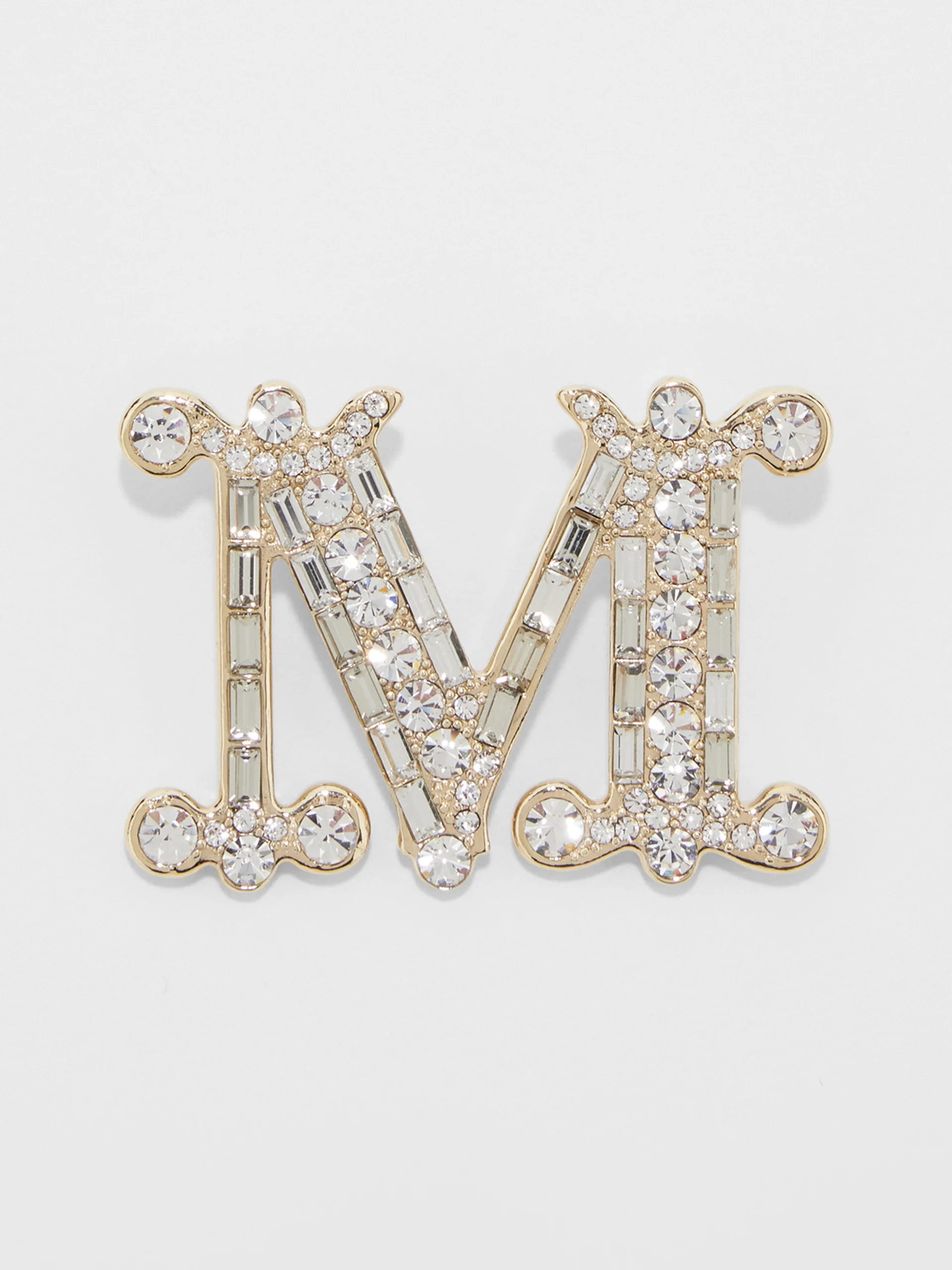 DETAILS Monogram brooch featuring an emblematic and feminine design that epitomises the Max Mara style. Galvanised metal brooch Covered in all-over micro glass crystals Lobster clasp at the back COMPOSITION AND CARE Metal, crystal. Distributed by Max Mara S.r.l., registered office in Reggio Emilia (Italy), Via Giulia Maramotti 4, 42124 (IT)
