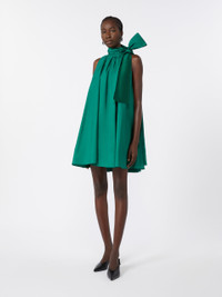 DETAILS Sleeveless, flared mini dress with pleating that creates volume. Taffeta dress Loose fit Stand-up collar with bow-tie sash detail Halterneck design Heavyweight silk satin interior Lined model COMPOSITION AND CARE Fabric 75% polyester, 25% silk; fabric 2 100% silk; lining 85% acetate, 10% silk, 5% polyamide. Do not wash; do not bleach; do not tumble dry; cool iron; professionally dry clean perchloroethylene - mild process; do not wet clean.; iron with a cloth between. Distributed by Max Mara S.r.l., registered office in Reggio Emilia (Italy), Via Giulia Maramotti 4, 42124 (IT)