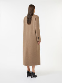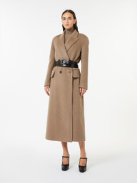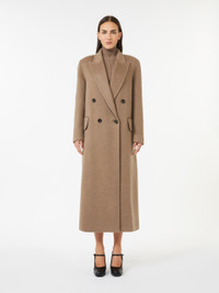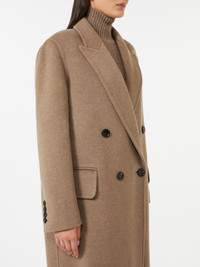 DETAILS Long double-breasted coat, featuring an oversized, masculine-inspired design. Double-drap coat in pure cashmere with a soft texture Oversized lines Wide collar with peak lapels Long sleeves with dropped shoulders and buttons on the cuffs Button fastening at the front Welt pockets with flap applied on the front Partially lined COMPOSITION AND CARE Fabric 100% cashmere; - except joining thread; lining 100% viscose. Do not wash; do not bleach; do not tumble dry; cool iron; professionally dry clean perchloroethylene - mild process; do not wet clean.; do not iron the buttons.; protect buttons before washing.; contains non-textile parts of animal origin. Distributed by Max Mara S.r.l., registered office in Reggio Emilia (Italy), Via Giulia Maramotti 4, 42124 (IT)