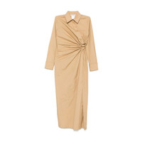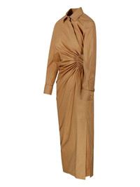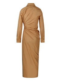 draped shirt dress Highlights - Camel brown - Long sleeves - Front draping - Classic collar - Side slit - Button fastening Made in Italy Composition Cotton 100% SIZE & FIT FittingInformation Designed for a slim fit that sits just away from the body offering a close yet comfortable fit Made from a midweight non-stretch fabric, this piece offers minimal elasticity when worn Washing instructions Read Manufacturer Guidelines