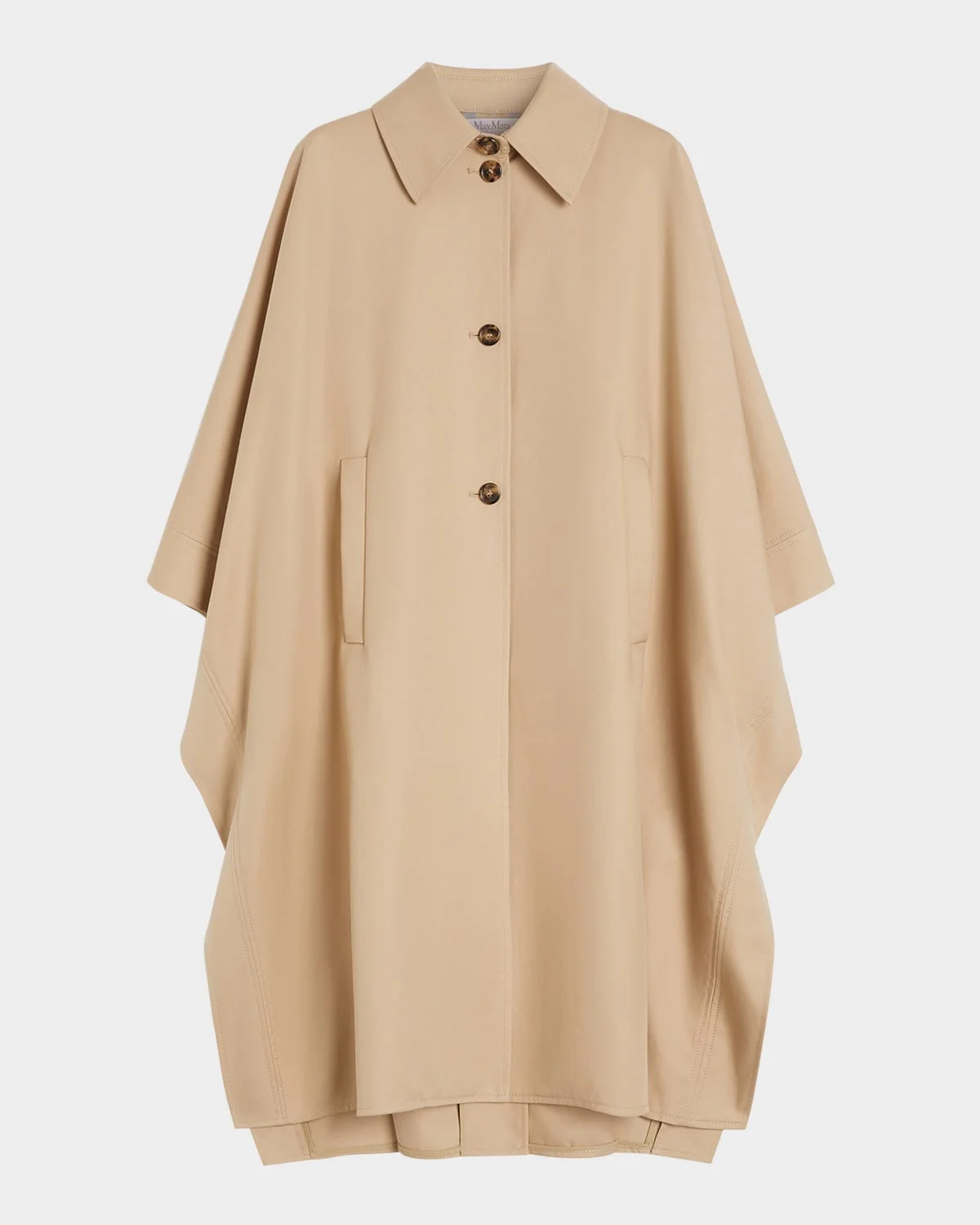 - Max Mara "Pedale" single-breasted cape in water-repellent cotton gabardine - Point collar; button front - Long sleeves - Front welt pockets - Falls below the knee - A-line silhouette - Cotton - Dry clean - Made in Italy