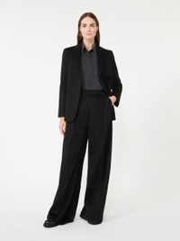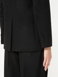 DETAILS Single-breasted blazer featuring a semi-fitted silhouette. Lightweight zibeline baby camel drap blazer Lapel collar and set-in sleeves with buttoned cuffs Two-button front fastening Chest pocket and low patch pockets Lined in Monogram jacquard fabric Centre slit on the back Embellished with tailored pick stitch COMPOSITION AND CARE Fabric 100% camelwool; lining 65% acetate, 35% polyester. Do not wash; do not bleach; do not tumble dry; cool iron; professionally dry clean perchloroethylene - mild process; do not wet clean.; do not iron the buttons.; protect buttons before washing.; contains non-textile parts of animal origin. Distributed by Max Mara S.r.l., registered office in Reggio Emilia (Italy), Via Giulia Maramotti 4, 42124 (IT)