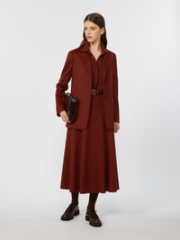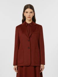 DETAILS Single-breasted blazer featuring a semi-fitted silhouette. Lightweight zibeline baby camel drap blazer Lapel collar and set-in sleeves with buttoned cuffs Two-button front fastening Chest pocket and low patch pockets Lined in Monogram jacquard fabric Centre slit on the back Embellished with tailored pick stitch COMPOSITION AND CARE Fabric 100% camelwool; lining 65% acetate, 35% polyester. Do not wash; do not bleach; do not tumble dry; cool iron; professionally dry clean perchloroethylene - mild process; do not wet clean.; do not iron the buttons.; protect buttons before washing.; contains non-textile parts of animal origin. Distributed by Max Mara S.r.l., registered office in Reggio Emilia (Italy), Via Giulia Maramotti 4, 42124 (IT)