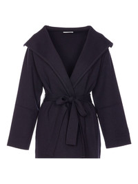 belted coat Highlights - Dark blue - Belted waist - Long sleeves Imported Composition Viscose 43%, Polyamide 42%, Wool 15% Washing instructions Read Manufacturer Guidelines