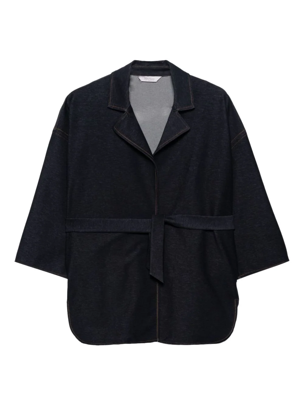 belted jacket Highlights - Blue - Belt detail - Topstitching - Three-quarter sleeves - Notched lapels Imported Composition Fabric 100% Washing instructions Read Manufacturer Guidelines