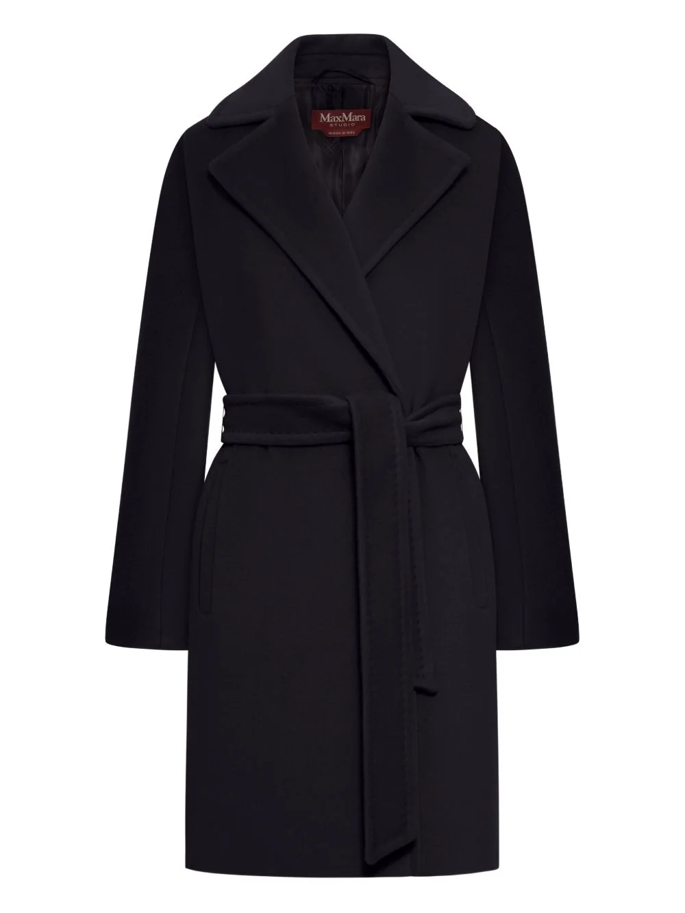 belted wool coat Highlights - Black - Wool - Belt - Lapel collar - Long sleeves Made in Italy Composition Wool 100% Washing instructions Read Manufacturer Guidelines