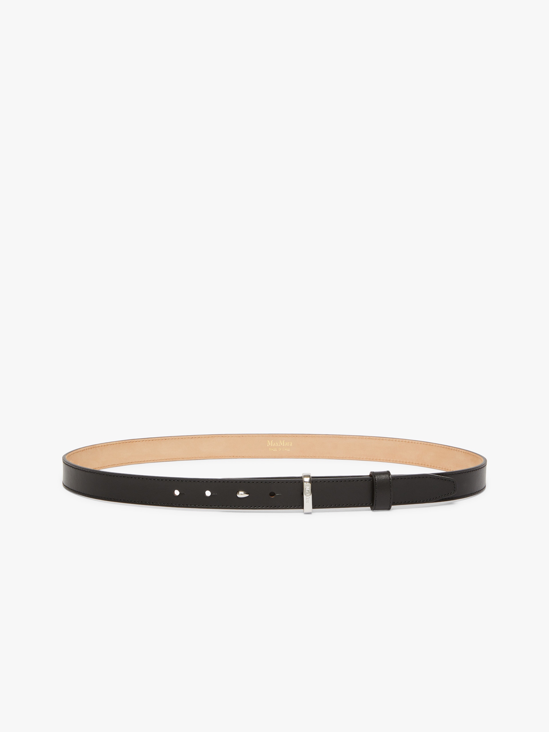 DETAILS Flat belt in soft calfskin featuring a twin buckle clasp and branded metal loop detail. Embellished with a second leather belt loop and square tip. Width: 2.5 cm. The accessory comes in a Max Mara branded fabric dust bag. COMPOSITION AND CARE Material belt calf; back cattle. Distributed by Max Mara S.r.l., registered office in Reggio Emilia (Italy), Via Giulia Maramotti 4, 42124 (IT)
