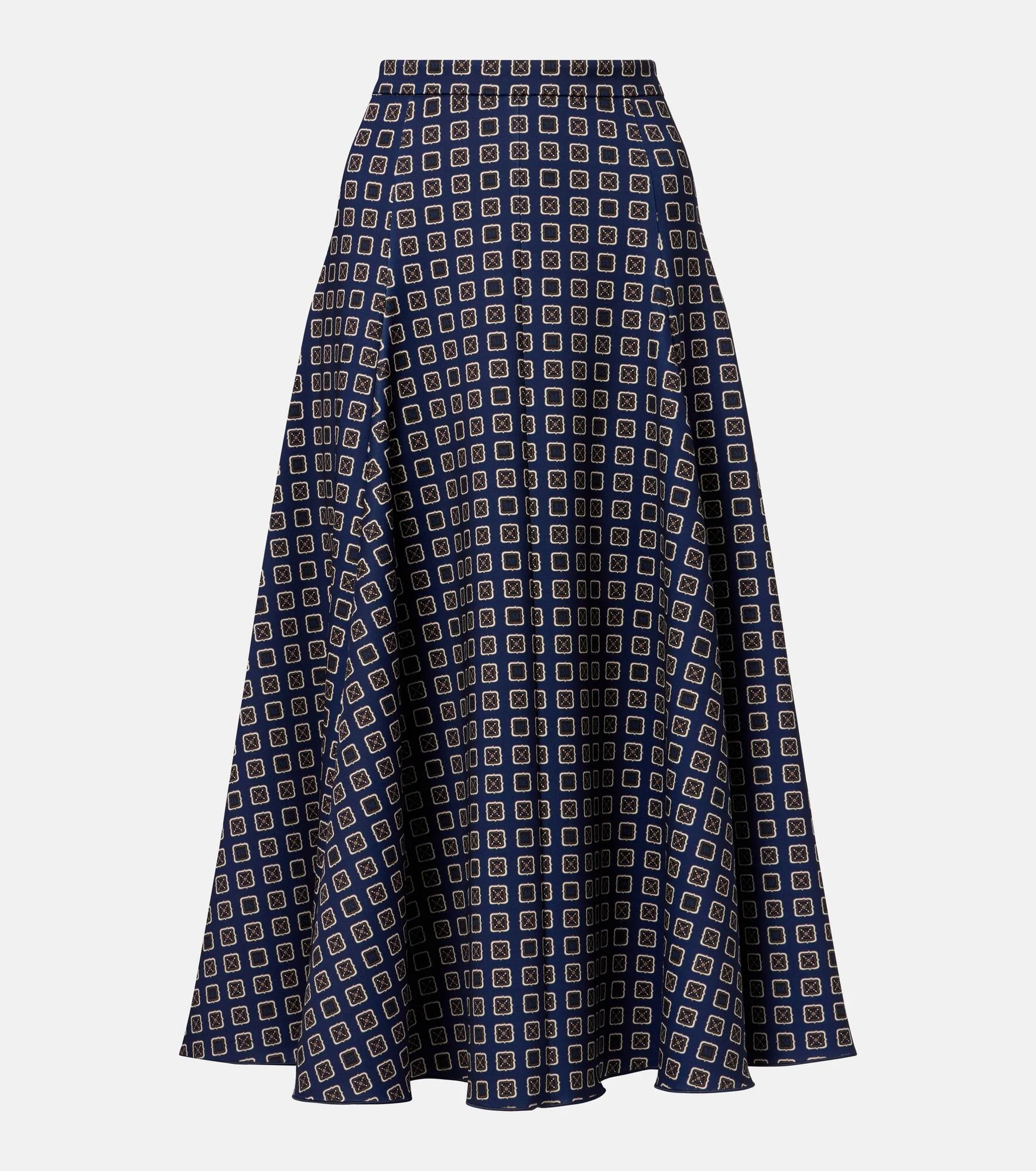 The Benda midi skirt by Max Mara is adorned with an allover archive print from E. Marinella. Crafted from fluid jersey, the design falls into a softly flared silhouette that moves with ease. Product Details - Material: 95% polyester, 5% elastane - Care instructions: machine wash at 30 degrees - Made in Italy - Color: blue - Designer color name: Fondo Blu - Item color: blue - Closure: concealed zipped back - Item number: P01120767 Size & Fit - True to size - Slightly stretchy fabric - High-waisted - The model seen in the picture is 178cm-5'10" and wearing a size DE 34