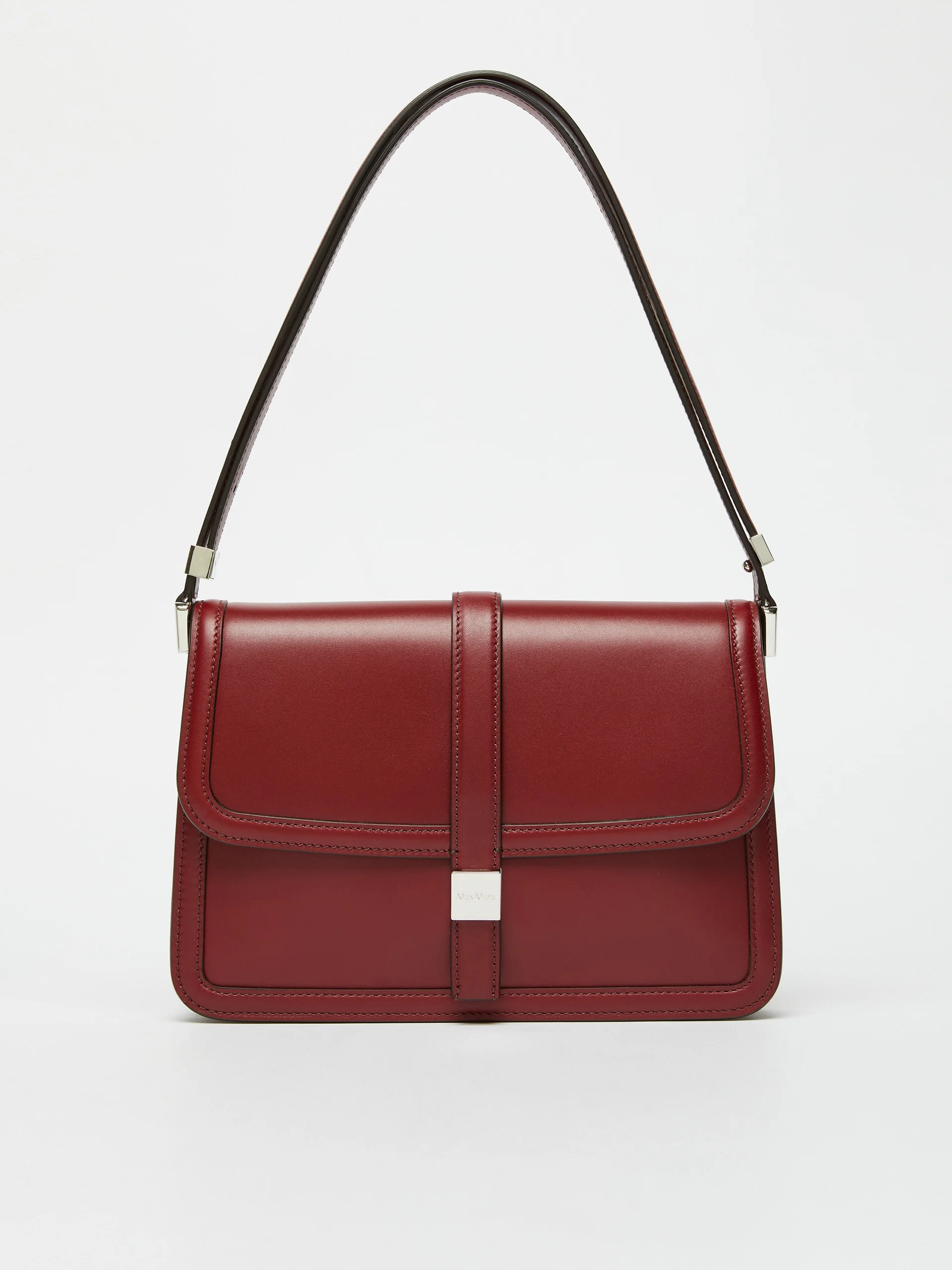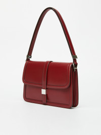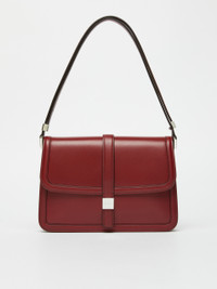 DETAILS Retro-style handbag for shoulder or crossbody use. Handbag in semi-glossy natural calfskin Accordion-style suede interior Zipped inner pocket and a flat outer pocket Adjustable and removable single handle with side clasp detail Slightly embossed profiles Flapover design, complete with a Max Mara logo-decorated square metal button Size: 27.5 x 6.5 x 20.5 cm COMPOSITION AND CARE Handbag in calf; inside in goat leather. Distributed by Max Mara S.r.l., registered office in Reggio Emilia (Italy), Via Giulia Maramotti 4, 42124 (IT)
