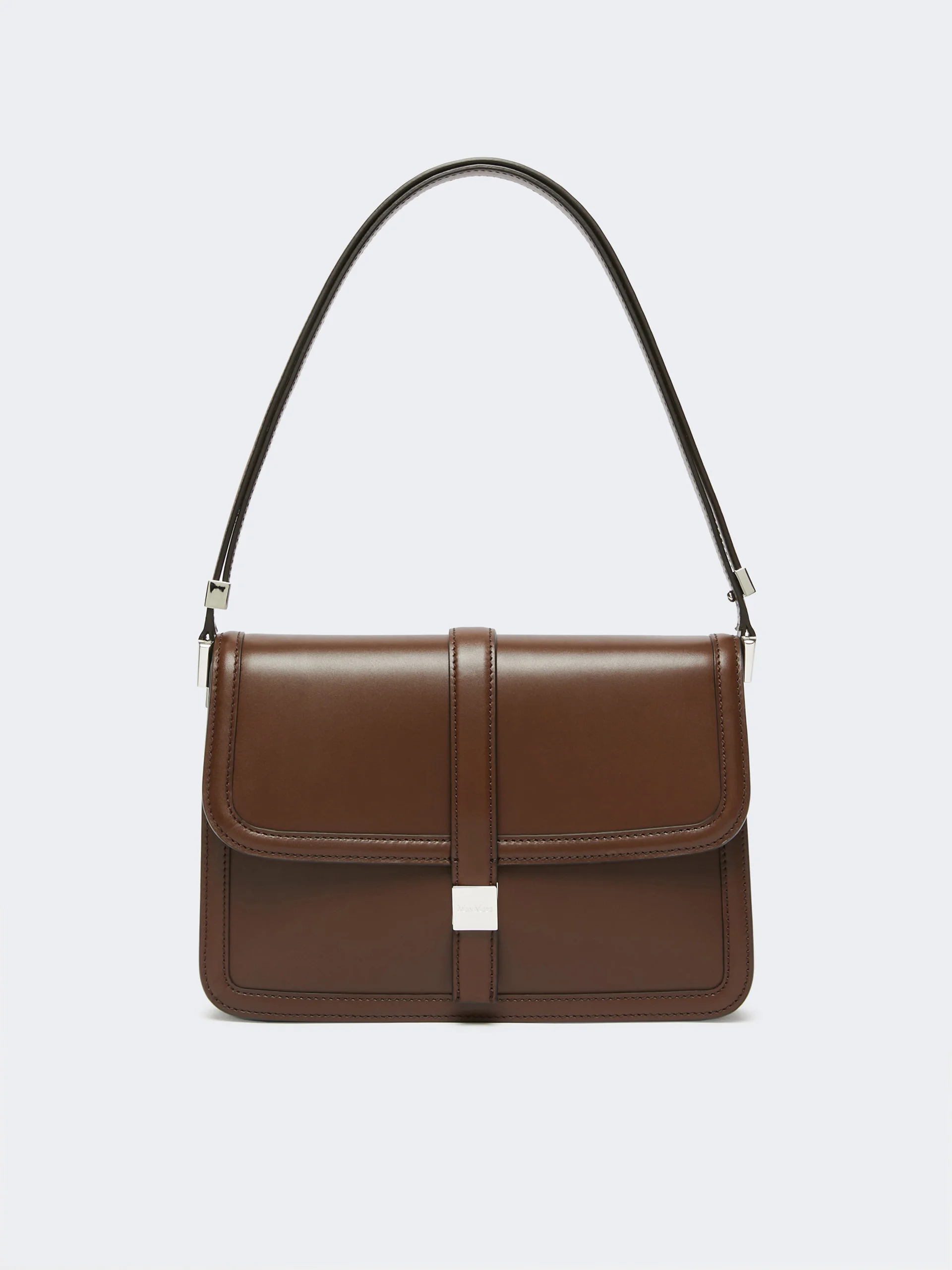 DETAILS Retro-inspired handbag designed to be worn on the shoulder or crossbody. Low sheen, naturally smooth calfskin handbag Gusseted, suede interior with zip pocket and patch pocket External flat pocket on the back Single handle adjustable using the button head studs on the side Slightly raised profiles Flap closure with square metal Max Mara logo button Measurements: 27.5 x 6.5 x 20.5 cm COMPOSITION AND CARE Handbag in calf; inside in goat leather. Distributed by Max Mara S.r.l., registered office in Reggio Emilia (Italy), Via Giulia Maramotti 4, 42124 (IT)
