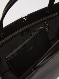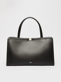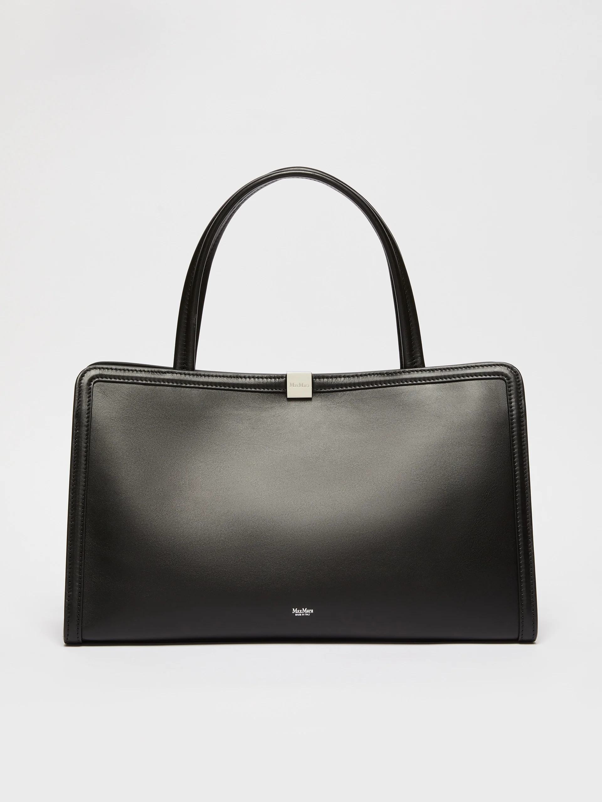 DETAILS Horizontal tote bag featuring slightly squared-off profiles and embossed trims. Tote bag in semi-glossy natural calfskin Suede interior with two zipped pockets and a split ring for small leather goods Double handle for shoulder or handheld use Max Mara lettering print on the front at the bottom, and metal bag feet Square branded metal button fastening at the top Size: 39.5 x 15.5 x 24 cm COMPOSITION AND CARE Handbag in calf; inside in goat leather. Distributed by Max Mara S.r.l., registered office in Reggio Emilia (Italy), Via Giulia Maramotti 4, 42124 (IT)