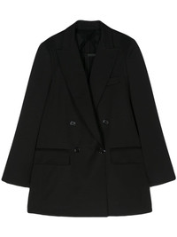 double-breasted wool-blend blazer Highlights - Black - Virgin wool blend - Twill weave - Logo-engraved buttons - Wide peak lapels - Double-breasted button fastening - Shoulder pads - Long sleeves - Buttoned cuffs - Chest welt pocket - Two front flap pockets - English rear vents - Straight hem - Partial lining Made in Italy Composition Outer: Virgin Wool 85%, Mohair 15% Lining: Acetate 65%, Polyester 35% Washing instructions Dry Clean Only