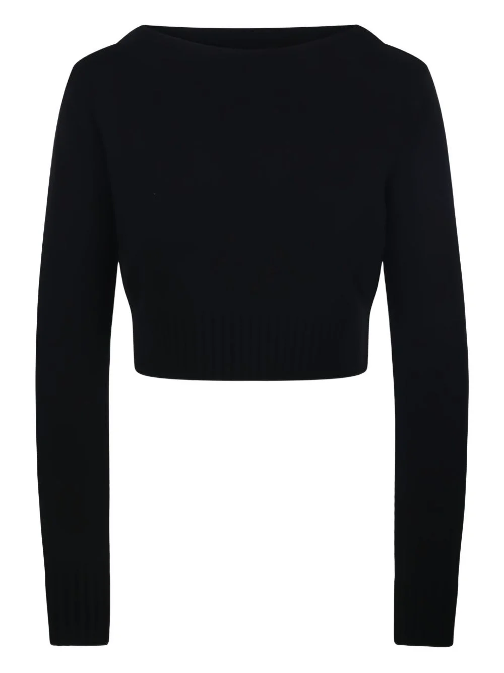 boat-neck cropped sweater Highlights - Black - Boat neck - Long sleeves - Ribbed hem - Knitted construction Made in Italy Composition Wool 70%, Cashmere 30%