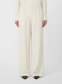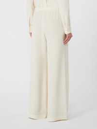 DETAILS Comfort-fit trousers, with elasticated waist and relaxed fit. Stretch crepe de Chine trousers Straight line with wide-leg at the hem Slant pockets at the sides COMPOSITION AND CARE 91% silk, 9% elastane. Do not wash; do not bleach; do not tumble dry; cool iron; professionally dry clean perchloroethylene - mild process; do not wet clean. Distributed by Max Mara S.r.l., registered office in Reggio Emilia (Italy), Via Giulia Maramotti 4, 42124 (IT)