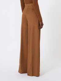 DETAILS Long trousers featuring a tailored silhouette with double pleats at the front waist. Lightweight pure camel zibeline drap trousers Wide fit Fastening with a wide waistband tab, zip fly and small hook Slant pockets at the sides Trouser crease and darts sewn at the waist back Unlined COMPOSITION AND CARE 100% camelwool. Do not wash; do not bleach; do not tumble dry; cool iron; professionally dry clean perchloroethylene - mild process; do not wet clean. Distributed by Max Mara S.r.l., registered office in Reggio Emilia (Italy), Via Giulia Maramotti 4, 42124 (IT)