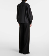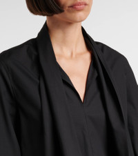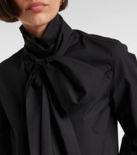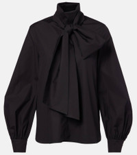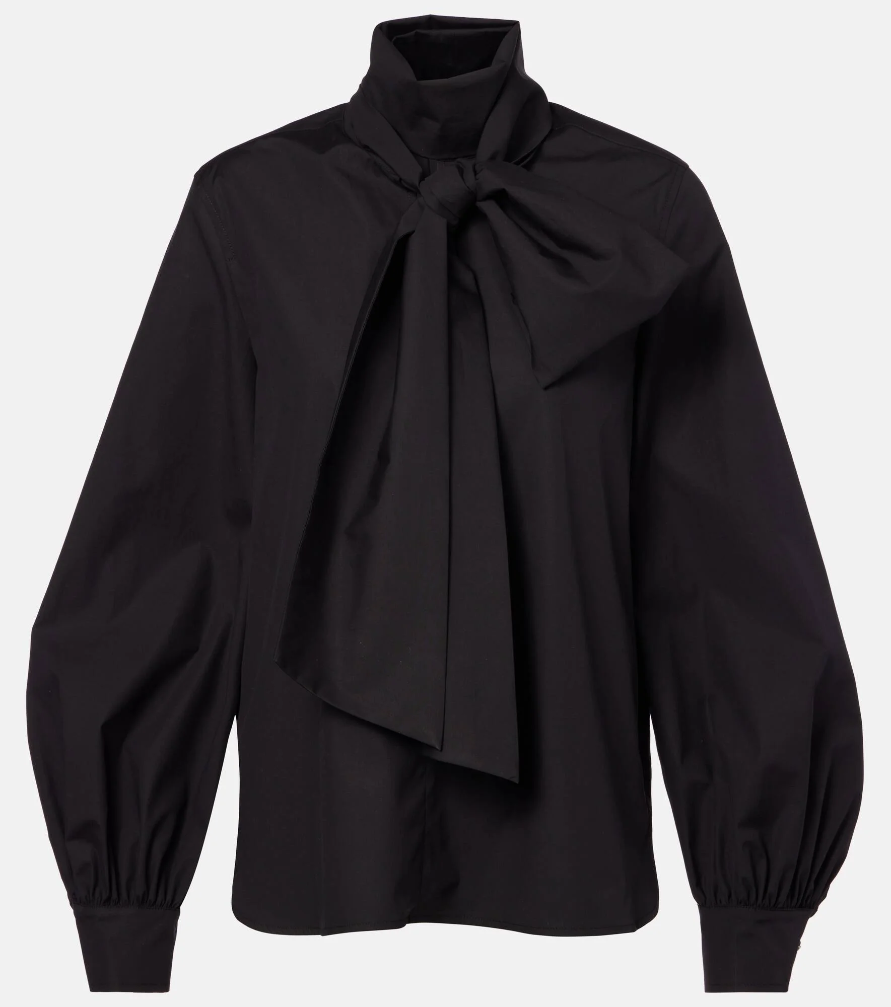 Boasting a rich manufacturing history, Max Mara represents the quintessence of Italian sophistication and expertise. Made from a soft cotton blend, the Bosforo blouse is complete with buttoned cuffs and an oversized bow detail for an elegant finish. Product Details - Material: 97% cotton, 3% elastane - Care instructions: machine wash at 30 degrees - Made in Italy - Designer color name: Nero - Item color: black - Cuff: one button - Self-tie collar - Side slits - Item number: P01079380 Size & Fit - True to size - Designed for a loose fit - Non-stretchy fabric - Falls to the hip - The model seen in the picture is 178cm-5'10" and wearing a size DE 34