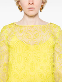 Bracco motif-embroidered midi dress Highlights - Lemon yellow - Organza - Semi-sheer construction - All-over motif embroidery - Round neck - Three-quarter length sleeves - Asymmetric hem - Mid-length - Internal slip dress Imported Composition Outer: Polyester 100% Lining: Acetate 85%, Silk 10%, Polyamide 5% SIZE & FIT Model measurements Height 5 ft 9 in(1.75 m) Bust/Chest 34.64 in(88 cm) Hips 36.61 in(93 cm) Waist 26.37 in(67 cm) FittingInformation Designed to be unstructured, offering a loose fit throughout The detachable slip sits just away from the body, offering a close yet comfortable fit Made from a midweight non-stretch fabric This piece fits true to size – take your usual size Washing instructions Dry Clean Only