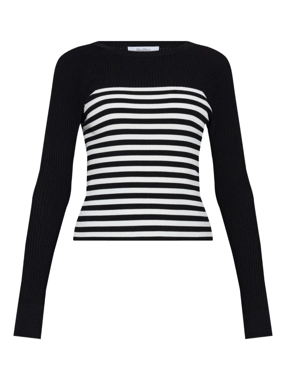 striped T-shirt Highlights - Black and white - Crew neck - Long sleeves - Ribbed texture - Horizontal stripe pattern Made in Italy Composition Viscose 83%, Polyester 17%
