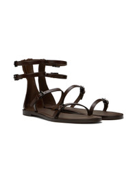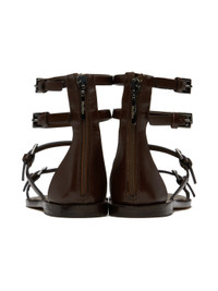 Buffed leather flat sandals in brown. · Pin-buckle straps throughout · Open toe · Zip closure at heel counter · Logo-embossed padded leather footbed · Stacked leather midsole · Leather sole with rubber injection Supplier color: Dark brown Upper: leather. Sole: leather, rubber. Made in Italy 241118F124000