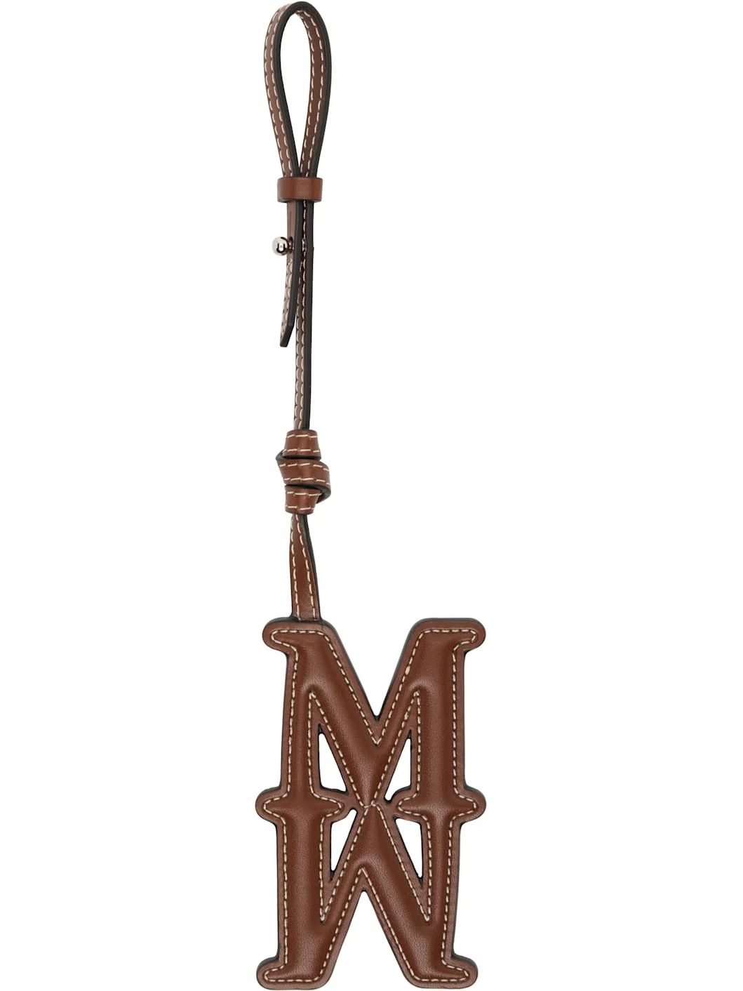 Padded calfskin bag charm. · Logo graphic charm · Knotted lanyard strap · Post-stud fastening · Contrast stitching in white · H10” x W2.25” Supplier color: Cocoa 100% calf leather. Made in Italy 261118F025002