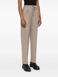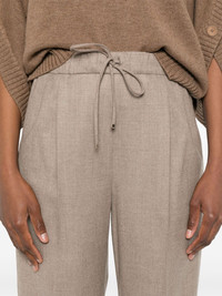 high-waisted trousers Highlights - Brown - Elasticated drawstring waistband - High-rise - Crease effect Made in Italy Composition Cashmere 96%, Elastane 4% SIZE & FIT Model measurements Height 5 ft 11 in(1.8 m) Bust/Chest 31.49 in(80 cm) Hips 36.61 in(93 cm) Waist 24.4 in(62 cm) FittingInformation Designed for a slim fit, these trousers offer a close fit at the waist, allowing a comfortable close fit and some movement over the leg The unfinished hems allow for the length to be altered Made from a midweight stretch fabric, this piece offers elasticity and flexibility when worn Washing instructions Dry Clean Only