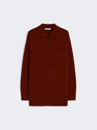 DETAILS Shirt jacket with patch pocket on the chest, left side as worn. Wool and cashmere plain-knit jacket Loose fit with small side slits Shirt collar Long, low-set sleeves with wide cuffs Front fastening with logo horn buttons Ribbed cuffs and hem COMPOSITION AND CARE 100% cashmere. Hand wash cold (40°c max); do not bleach; do not tumble dry; flat drying in the shade; cool iron; professionally dry clean perchloroethylene - mild process; do not wet clean.; iron with a cloth between.; using neutral detergent. Distributed by Max Mara S.r.l., registered office in Reggio Emilia (Italy), Via Giulia Maramotti 4, 42124 (IT)