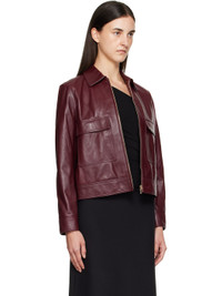 Grained lambskin jacket. · Spread collar · Zip closure · Flap pockets at front · Cropped hem · Sateen lining Part of the Max Mara Studio collection. Supplier color: Bordeaux Body: 100% lambskin. Lining: 94% polyester, 6% elastane. Made in India 252118F064003