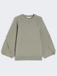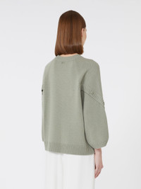 DETAILS Slightly oversized sweater featuring crossover detail and branded horn buttons on the sleeves. Stockinette-stitched wool and cashmere yarn sweater Crew neckline Loose-fitting raglan sleeves Branded horn plate on the back of the neck Ribbed hems COMPOSITION AND CARE 70% wool, 30% cashmere. Hand wash cold (40°c max); do not bleach; do not tumble dry; flat drying in the shade; cool iron; professionally dry clean perchloroethylene - mild process; do not wet clean.; iron with a cloth between.; using neutral detergent. Distributed by Max Mara S.r.l., registered office in Reggio Emilia (Italy), Via Giulia Maramotti 4, 42124 (IT)