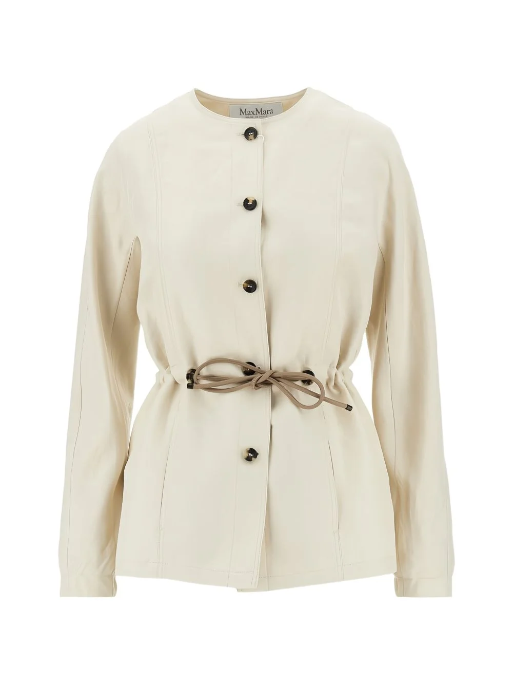button drawstring jacket Highlights - Light beige - Button fastening - Round neck - Drawstring - Long sleeves - Tonal stitching Made in Italy Composition Linen/Flax 63%, Silk 37% Washing instructions Read Manufacturer Guidelines