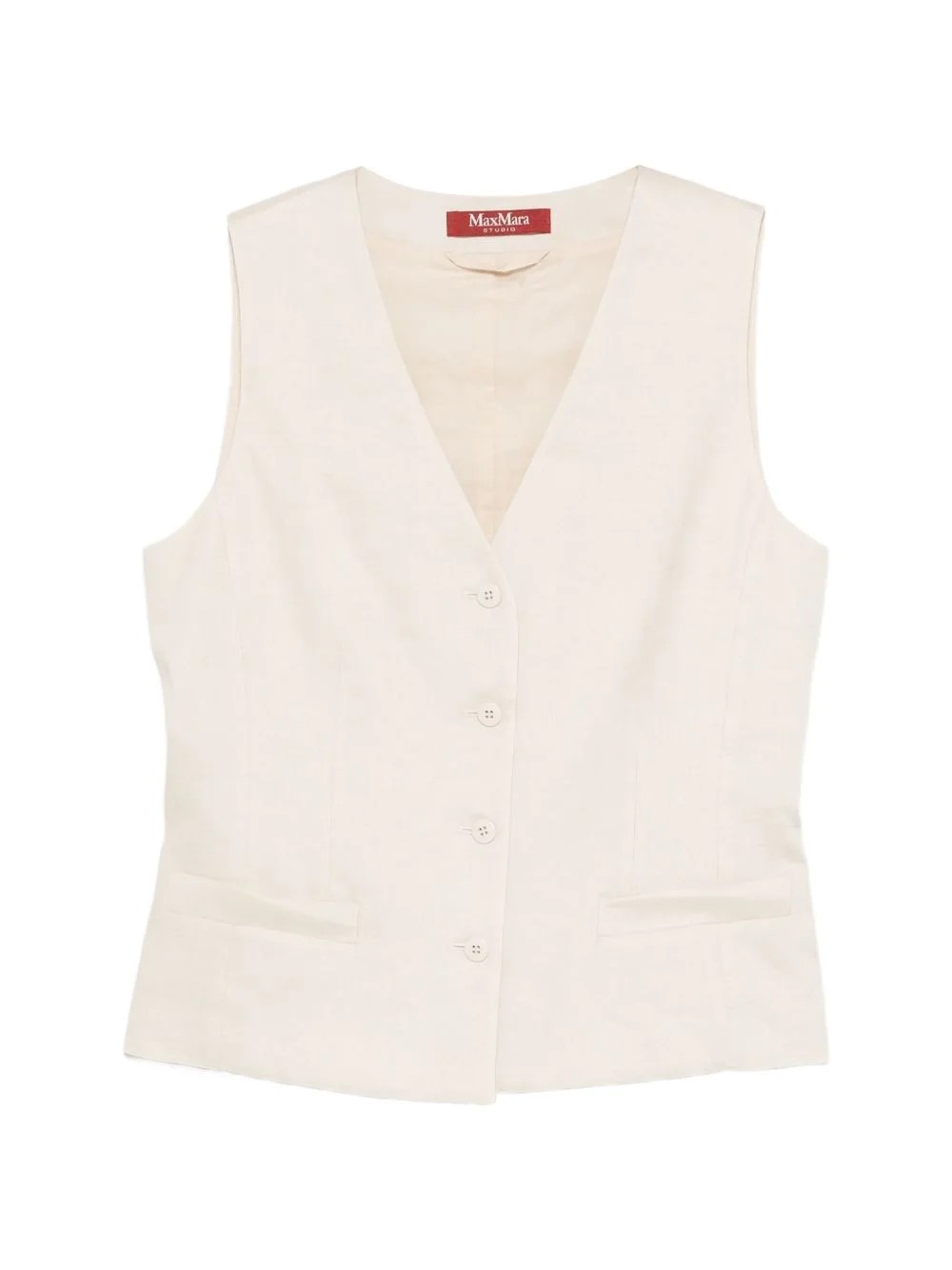 buttoned waistcoat Highlights - Beige - Button fastening - Sleeveless Imported Composition Outer: Linen/Flax 100% Lining: Cotton 100%, Linen/Flax 100% Washing instructions Machine Wash