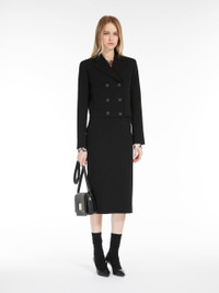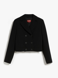 DETAILS Double-breasted cropped jacket in technical cady fabric featuring a button fastening. The model boasts a lapel collar and long set-in sleeves. Lined model. Length: 50 cm. COMPOSITION AND CARE Fabric 71% triacetate, 29% polyester; lining 70% acetate, 30% polyester. Do not wash; do not bleach; do not tumble dry; cool iron; professionally dry clean perchloroethylene - mild process; do not wet clean.; wash the garment while it is fastened.; do not iron the buttons.; protect buttons before washing.; turn the articles inside out before washing. Distributed by Max Mara S.r.l., registered office in Reggio Emilia (Italy), Via Giulia Maramotti 4, 42124 (IT)