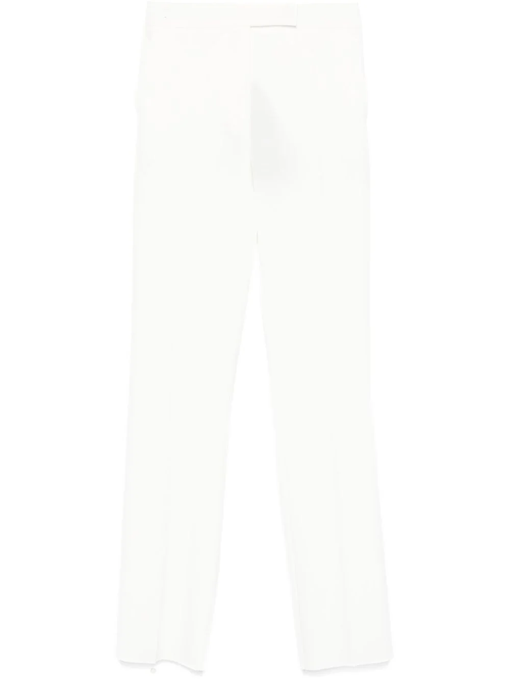 Vincita trousers Highlights - White - Concealed front button, hook and zip fastening - Two side slash pockets - Faux pocket detail - Pressed crease Made in Italy Composition Triacetate 64%, Polyester 36% SIZE & FIT Model measurements Height 5 ft 11 in(1.8 m) Bust/Chest 32.67 in(83 cm) Hips 36.22 in(92 cm) Waist 24.4 in(62 cm) FittingInformation Designed for a slim fit, these trousers offer a close fit at the waist, allowing a comfortable close fit and some movement over the leg Made from a midweight non-stretch fabric, this piece offers minimal elasticity when worn