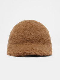 DETAILS Baseball cap with semi-rigid visor made of camel hair on a silk base. Finished with leather details. COMPOSITION AND CARE Jersey fabric 88% camelwool, 12% silk; with details in lamb leather; lining 100% viscose. Do not wash; do not bleach; do not tumble dry; do not iron; do not dry clean; do not wet clean.; do not wash or dry clean by fabric methods. clean only by leather and fur specialists.; contains non-textile parts of animal origin. Distributed by Max Mara S.r.l., registered office in Reggio Emilia (Italy), Via Giulia Maramotti 4, 42124 (IT)