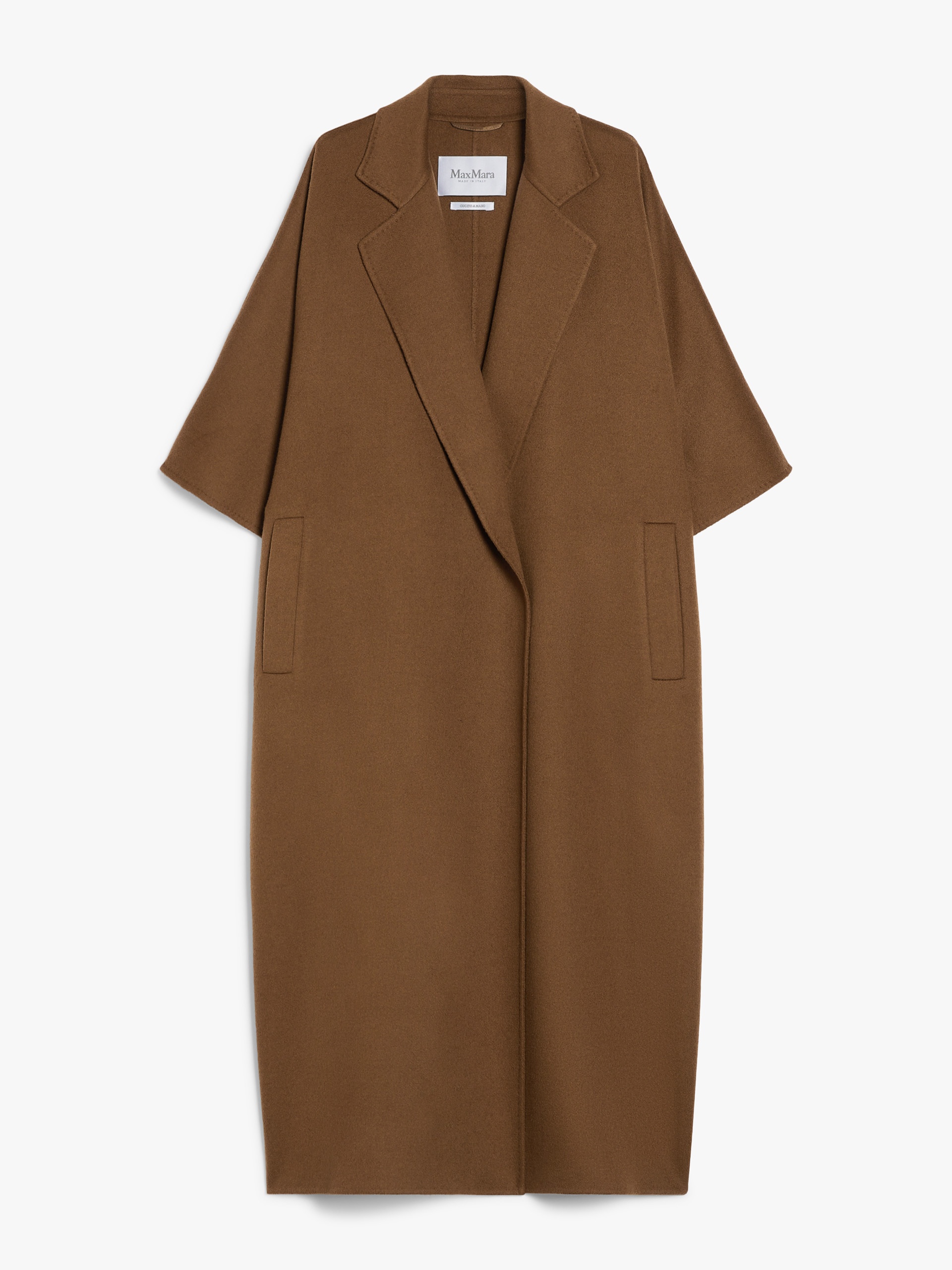 DETAILS Long coat made from hand-sewn, luxurious pure camel hair drap double cloth. Cape-inspired garment, distinguished by a wide and enveloping silhouette, with elbow-length and roll-back kimono sleeves, lapel collar and pockets inset at the sides. Finished with tailor’s pick stitch. COMPOSITION AND CARE Fabric 100% camelwool; - except joining thread. Do not wash; do not bleach; do not tumble dry; cool iron; professionally dry clean perchloroethylene - mild process; do not wet clean. Distributed by Max Mara S.r.l., registered office in Reggio Emilia (Italy), Via Giulia Maramotti 4, 42124 (IT)