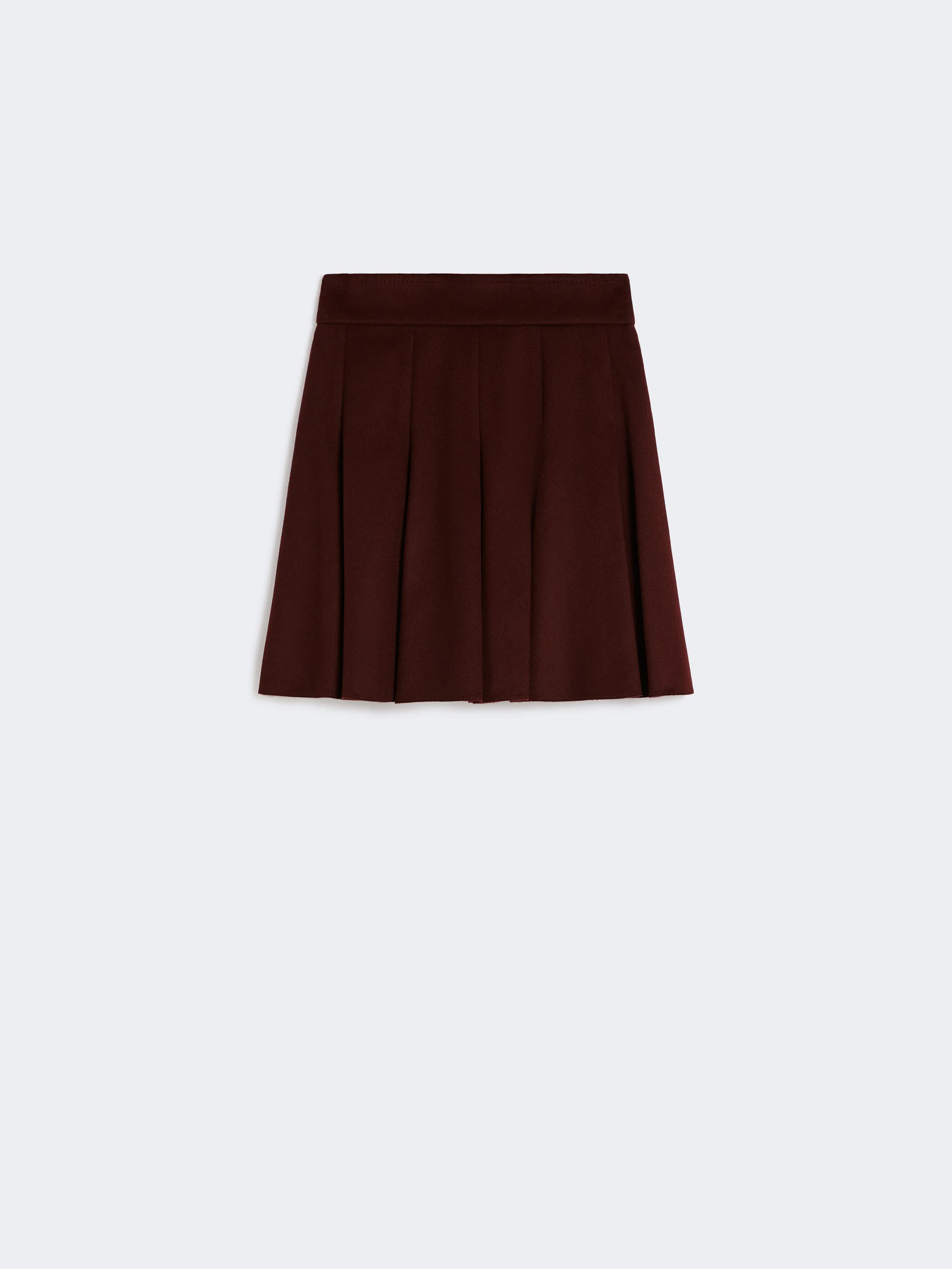 DETAILS High-waisted short skirt with semi-sewn pleats at the waist. Pure camel drap skirt Flared Back zip fastening Lined COMPOSITION AND CARE Fabric 100% camelwool; lining 95% acetate, 5% elastane. Do not wash; do not bleach; do not tumble dry; cool iron; professionally dry clean perchloroethylene - mild process; do not wet clean. Distributed by Max Mara S.r.l., registered office in Reggio Emilia (Italy), Via Giulia Maramotti 4, 42124 (IT)