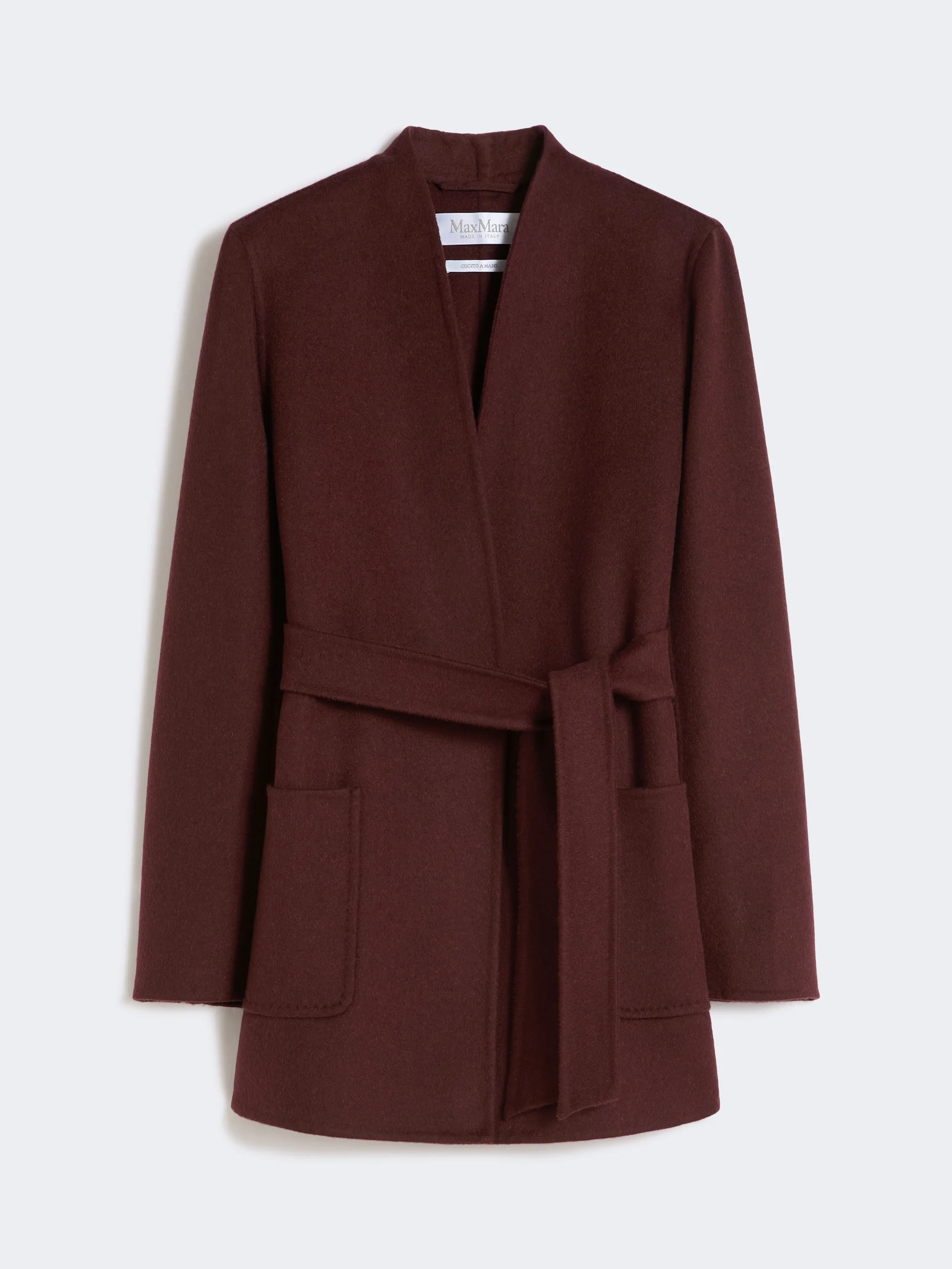 DETAILS Short jacket with a robe silhouette and matching belt at the waist. - Pure camel drap double fabric jacket - Straight cut - Mandarin collar - Long set-in sleeves - Pockets at the front - Embellished with a tailored pick stitch - Unlined COMPOSITION AND CARE Fabric 100% camelwool; - except joining thread. Do not wash; do not bleach; do not tumble dry; cool iron; professionally dry clean perchloroethylene - mild process; do not wet clean. Distributed by Max Mara S.r.l., registered office in Reggio Emilia (Italy), Via Giulia Maramotti 4, 42124 (IT) Collection: Max Mara Product code: 1046045206011 - HAROLD