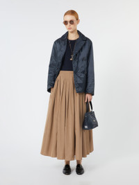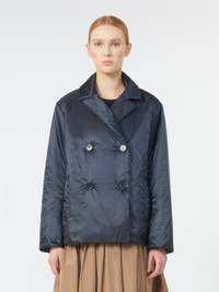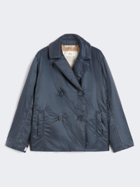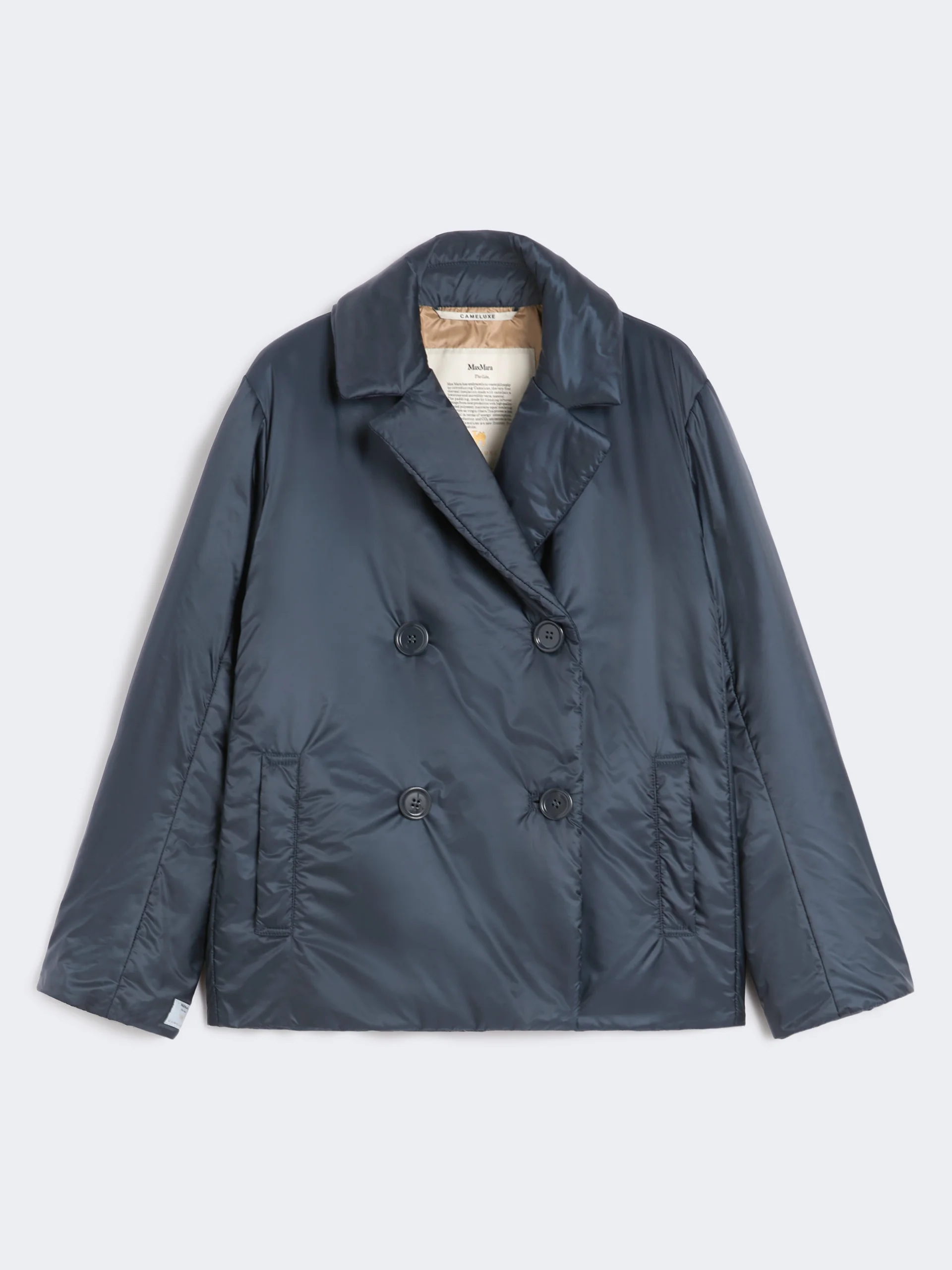 DETAILS Padded pea coat-style jacket, with wide dual-use lapel collar and long sleeves. - The style is distinguished by the Cameluxe padding - Water-repellent canvas jacket - Straight line cropped to just above the hip - Double-breasted fastening with buttons - Vertical welt pockets on the sides - Travel shopping bag with "Max Mara The Cube" logo COMPOSITION AND CARE Fabric 100% polyester; lining 100% polyester; with quilting in 48% polyester, 48% camelwool, 4% silk; care case 100% polyester. Do not wash; do not bleach; do not tumble dry; do not iron; professionally dry clean perchloroethylene - mild process; do not wet clean.; wash the garment while it is fastened.; don’t iron the labels.; turn the articles inside out before washing. Distributed by Max Mara S.r.l., registered office in Reggio Emilia (Italy), Via Giulia Maramotti 4, 42124 (IT)