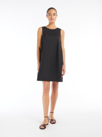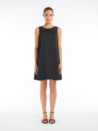 DETAILS Short sleeveless dress in soft cotton poplin fabric featuring an A-line cut and a crew neckline with small V-detail at the back of the neckline. Embellished with tone-on-tone topstitching, elasticated armholes and dart detail on the front and back. COMPOSITION AND CARE 78% cotton, 20% polyamide, 2% elastane. Machine wash cold delicate cycle; do not bleach; do not tumble dry; line drying in the shade; cool iron; professionally dry clean perchloroethylene - normal process. Distributed by Max Mara S.r.l., registered office in Reggio Emilia (Italy), Via Giulia Maramotti 4, 42124 (IT)