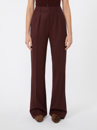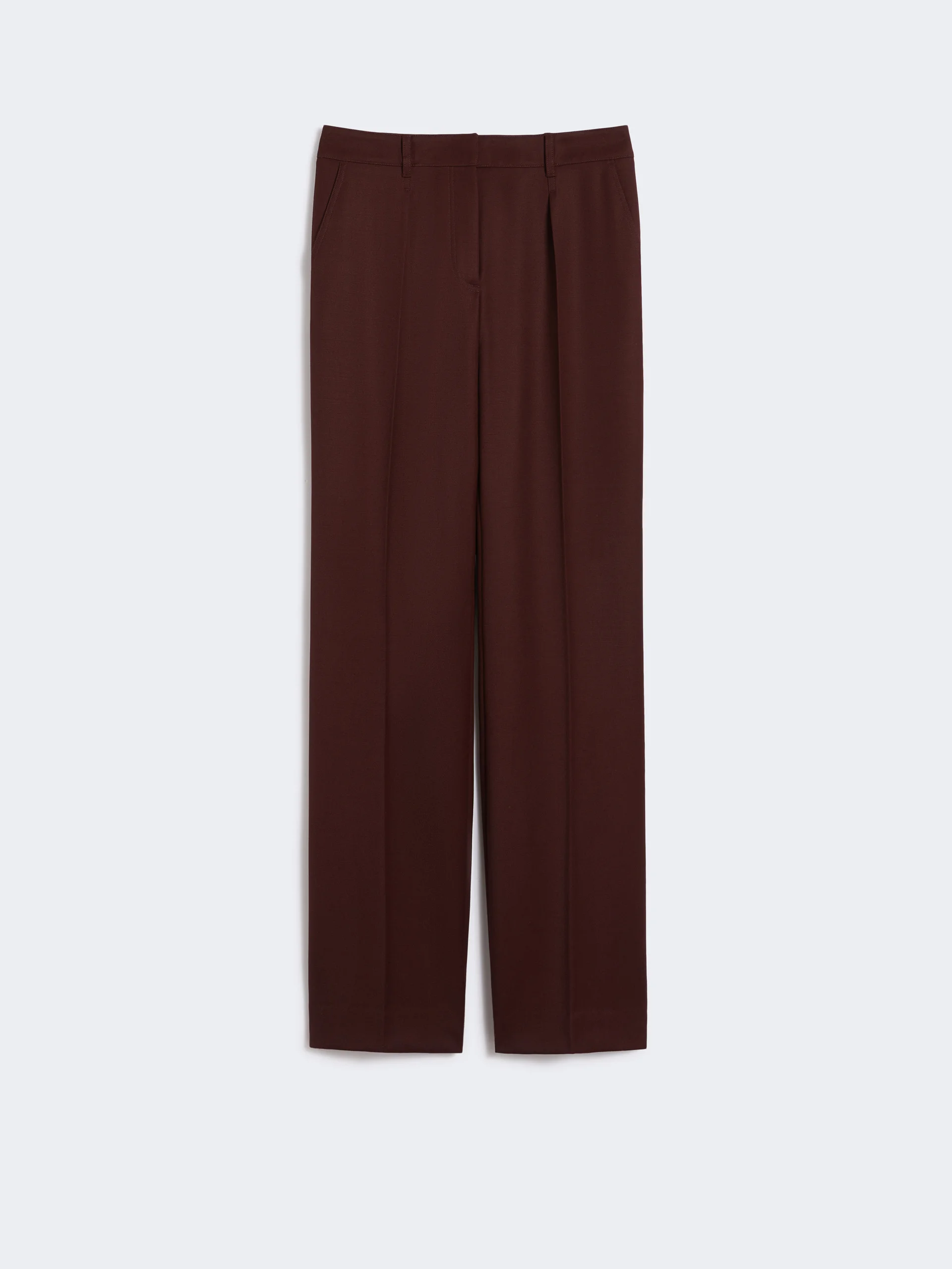 DETAILS Menswear-inspired trousers distinguished by a straight-leg silhouette with front pleats. Pure wool gabardine trousers Straight cut Fastening with a wide waistband tab, zip fly and small hook Slant pockets at the sides Welt pockets at the back Belt loops and trouser crease Customised leather label on the back waistband COMPOSITION AND CARE 100% virgin wool. Do not wash; do not bleach; do not tumble dry; cool iron; professionally dry clean perchloroethylene - mild process; do not wet clean.; wash the garment while it is fastened.; don’t iron the labels.; protect buttons before washing.; turn the articles inside out before washing.; contains non-textile parts of animal origin. Distributed by Max Mara S.r.l., registered office in Reggio Emilia (Italy), Via Giulia Maramotti 4, 42124 (IT)