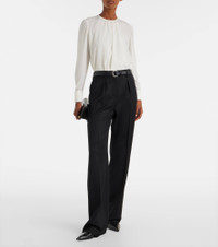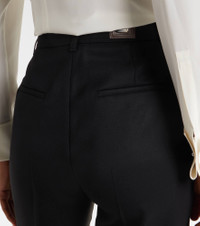 Boasting a rich manufacturing history, Max Mara represents the quintessence of Italian sophistication and expertise. The Cannes pants are crafted from virgin wool into a high-rise, straight-leg silhouette. Product Details - Material: 100% virgin wool - Care instructions: dry clean - Made in Italy - Designer color name: Nero - Item color: black - Contains non-textile parts of animal origin - Closure: zipper fly, button and hook fastenings - Pockets: side slit pockets, back pockets - Belt loops - Hem: unfinished (ready for alteration) - Item number: P01090662 Size & Fit - True to size - Non-stretchy fabric - Straight leg - Unhemmed for tailoring - The model seen in the picture is 178cm-5'10" and wearing a size DE 34