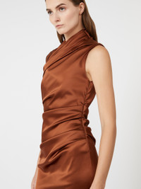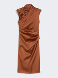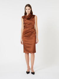 DETAILS Midi cocktail dress featuring an asymmetrical keyhole neckline and gathered detail on the left shoulder. Dress in heavy stretch satin fabric Slim, feminine fit Sleeveless design Concealed zip fastening at the side Gathered detail on the left side Unlined model COMPOSITION AND CARE Fabric 74% acetate, 23% polyamide, 3% elastane; lining 74% acetate, 23% polyamide, 3% elastane. Do not wash; do not bleach; do not tumble dry; cool iron; professionally dry clean perchloroethylene - mild process; do not wet clean. Distributed by Max Mara S.r.l., registered office in Reggio Emilia (Italy), Via Giulia Maramotti 4, 42124 (IT)