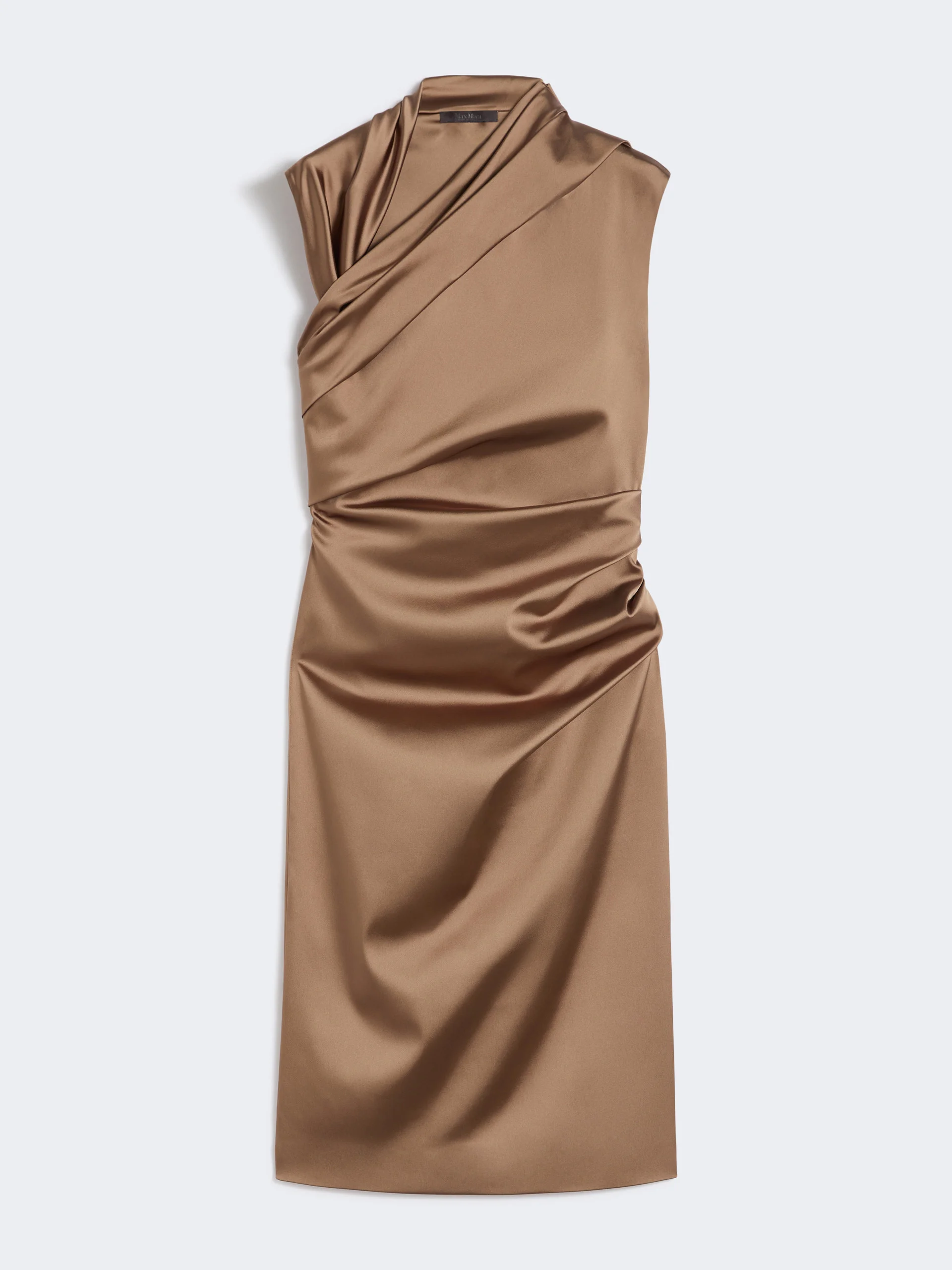 DETAILS Midi cocktail dress featuring an asymmetrical keyhole neckline and gathered detail on the left shoulder. Dress in heavy stretch satin fabric Slim, feminine fit Sleeveless design Concealed zip fastening at the side Gathered detail on the left side Unlined model COMPOSITION AND CARE Fabric 74% acetate, 23% polyamide, 3% elastane; lining 74% acetate, 23% polyamide, 3% elastane. Do not wash; do not bleach; do not tumble dry; cool iron; professionally dry clean perchloroethylene - mild process; do not wet clean. Distributed by Max Mara S.r.l., registered office in Reggio Emilia (Italy), Via Giulia Maramotti 4, 42124 (IT)