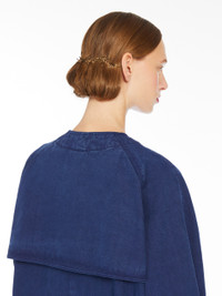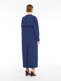 DETAILS Long double-breasted trench coat made of garment-dyed pure cotton canvas. The style features a loose silhouette and iconic details, such as raglan sleeves with cuff straps, buttoned welt pockets on the sides and a cape on the back. Unlined, it is finished with a centre-back slit and a classic asymmetric storm flap on the front. Button fastening. COMPOSITION AND CARE 100% cotton. Machine wash cold delicate cycle; do not bleach; do not tumble dry; line drying in the shade; cool iron; professionally dry clean perchloroethylene - mild process.; wash separately.; do not iron the buttons.; protect the buckle before washing.; turn the articles inside out before washing.; this item may leave colour stains on brightly-coloured garments. Distributed by Max Mara S.r.l., registered office in Reggio Emilia (Italy), Via Giulia Maramotti 4, 42124 (IT)