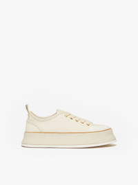 DETAILS Low-top lace-up sneakers made of cotton canvas, exceptionally lightweight and with a characteristic wide sole for maximum comfort. Customised with a jacquard label with a double M sewn on the tongue, logo leather heel cap and chevron sole with Max Mara 1951 logo insert. Finished with caramel-coloured rubber piping and a chevron tape loop at the back of the heel. The cotton canvas micro lining and the vulcanised rubber sole give life to soft, naturally elastic sneakers that are totally water-resistant and very hard wearing. COMPOSITION AND CARE Upper in 100% cotton; lining in cotton; sole in rubber. Distributed by Max Mara S.r.l., registered office in Reggio Emilia (Italy), Via Giulia Maramotti 4, 42124 (IT)