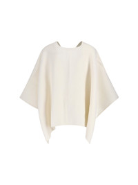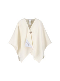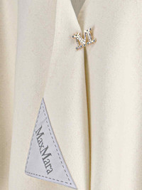 MAX MARA SERRA CAPE IN WHITE ALPACA AND WOOL BLEND, V-NECK, GOLD METAL LOGO CHARM CLOSURE, SILVER CRYSTAL RHINESTONE DETAILS, FRONT LOGO PATCH, AND ASYMMETRICAL HEM. PRODUCT INFO PRODUCT CODE 2524546081600001 COMPOSITION: 55% ALPACA, 25% POLYAMIDE, 20% WOOL SIZE AND FIT: SOFT FIT MADE IN: PERU - DETAILS: 100% CRYSTAL