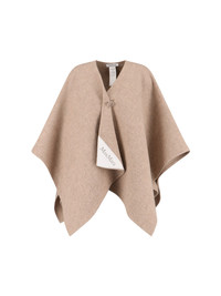 MAX MARA SERRA CAPE IN BEIGE ALPACA AND WOOL BLEND, V-NECK, GOLD METAL LOGO CHARM CLOSURE, SILVER CRYSTAL RHINESTONE DETAILS, FRONT LOGO PATCH, AND ASYMMETRICAL HEM. PRODUCT INFO PRODUCT CODE 2524546081600003 COMPOSITION: 55% ALPACA, 25% POLYAMIDE, 20% WOOL SIZE AND FIT: SOFT FIT MADE IN: PERU - DETAILS: 100% CRYSTAL