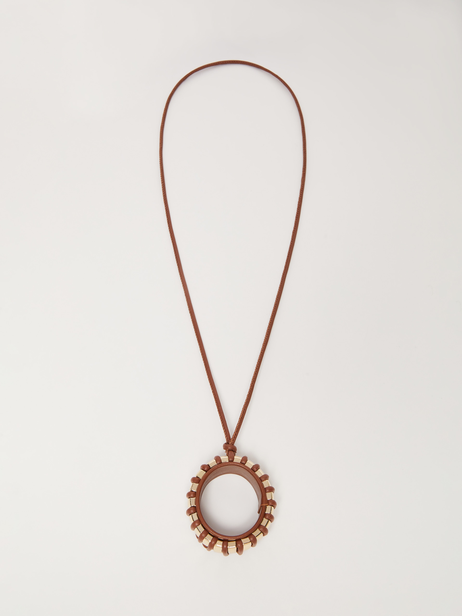 DETAILS Long necklace comprising leather and metal elements, in addition to a geometric pendant. COMPOSITION AND CARE Style in cattle; with details in metal. Distributed by Max Mara S.r.l., registered office in Reggio Emilia (Italy), Via Giulia Maramotti 4, 42124 (IT)