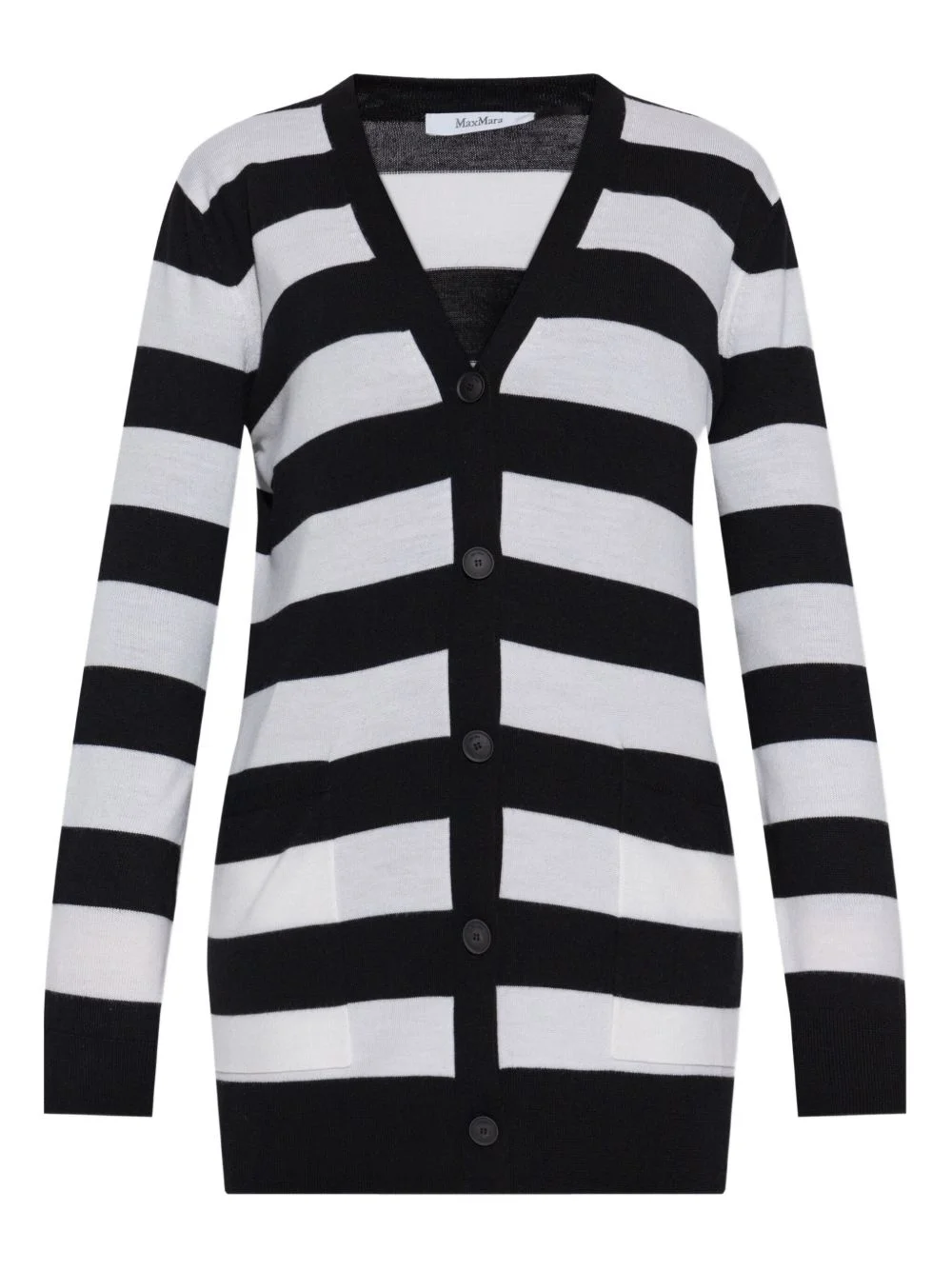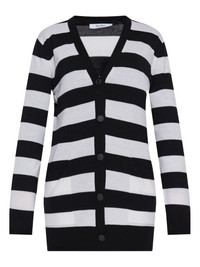 striped button-up cardigan Highlights - Black and white - Bold stripe pattern - V-neck - Button fastening - Long sleeves - Front patch pockets Made in Italy Composition Virgin Wool 100% Washing instructions Read Manufacturer Guidelines